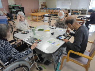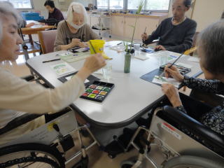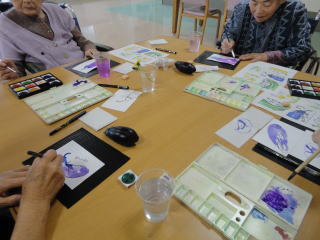 今月の画材は茄子などを使用し、皆さん好きな画材を選んで楽しんで描いていました(*^-^*)
